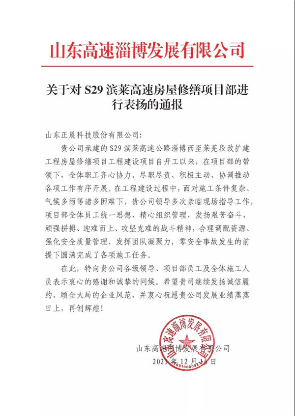 近日,新利网页版承建的S29滨莱高速公路淄博西至莱芜段改扩建工程房屋修缮项目获得业主表扬!