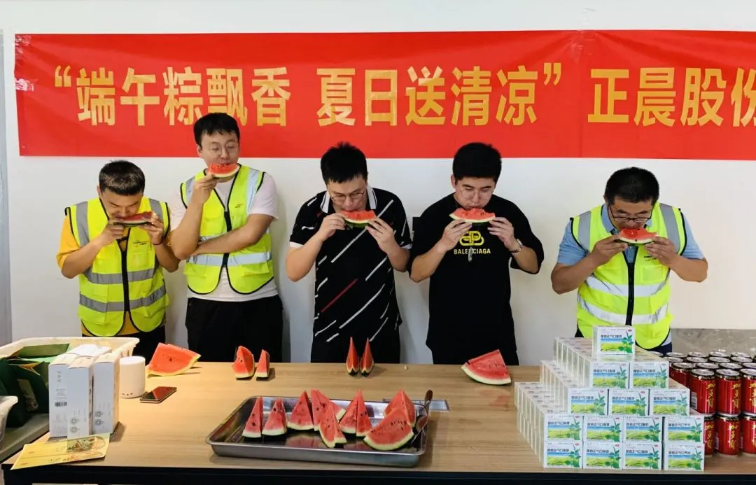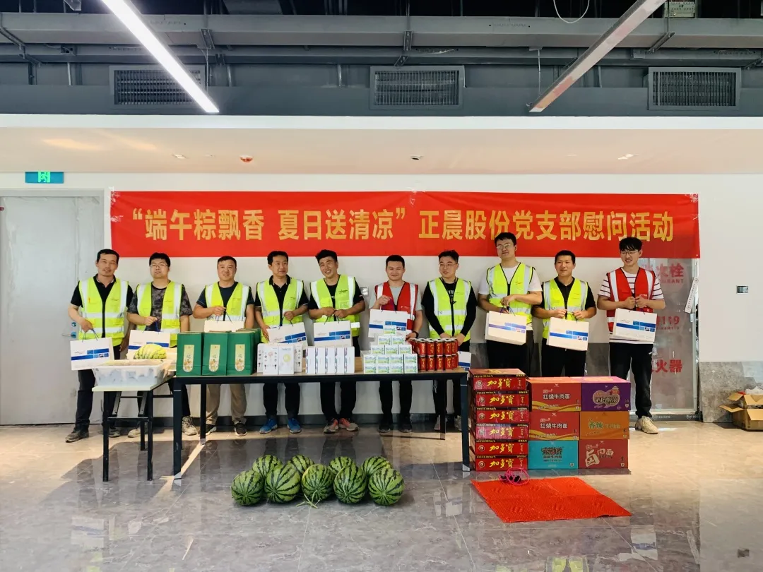 活动现场,正晨股份党支部党员代表们为现场工作人员送上了端午粽子、西瓜、凉茶、藿香正气水、方便面、洗漱大礼包等防暑降温慰问品,并向大家送去节日的问候和祝福。